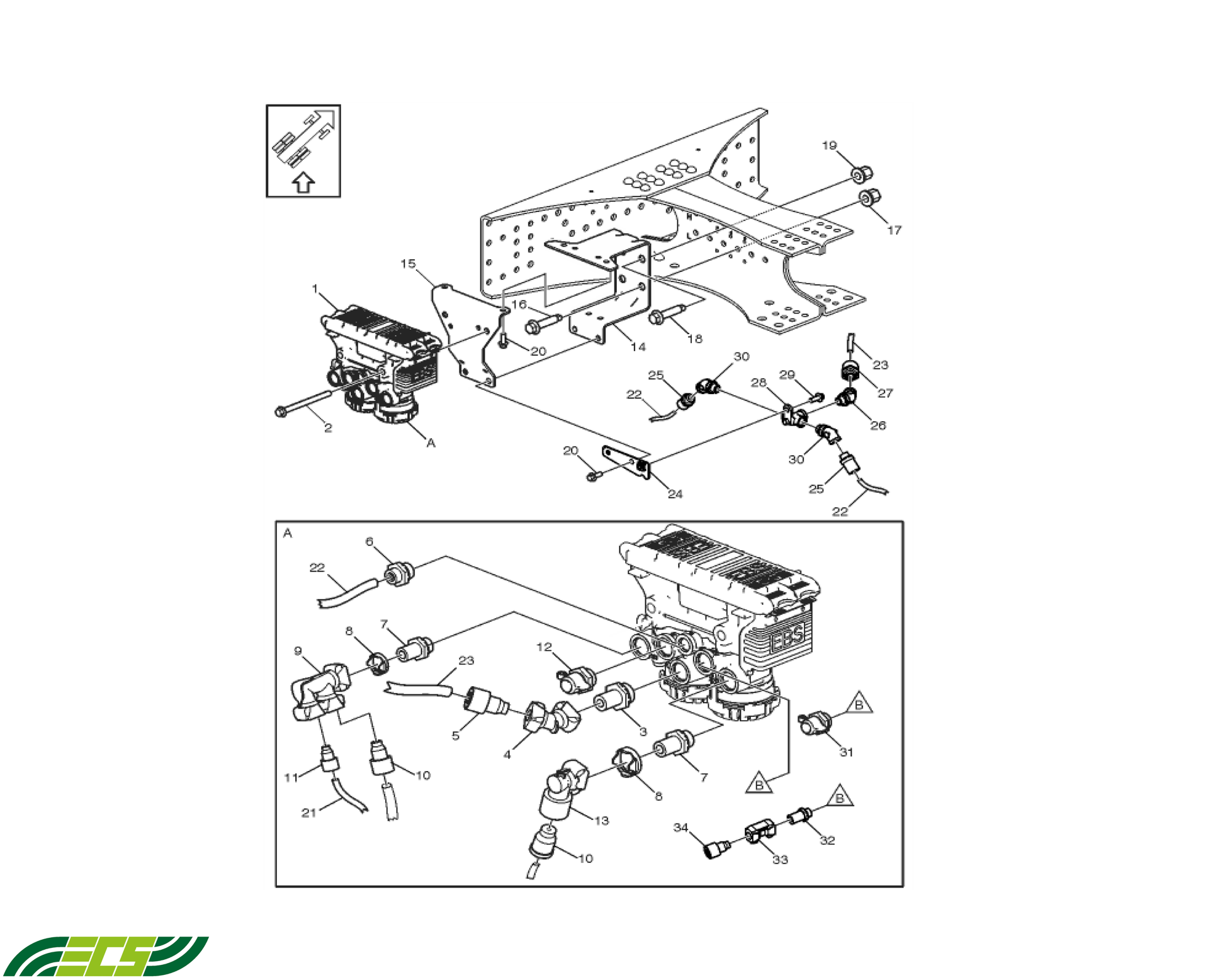 This Air Brake Rear Modulator is supplied according to ECS quality standards and is suitable for fleet maintenance, replacement, and export requirements.